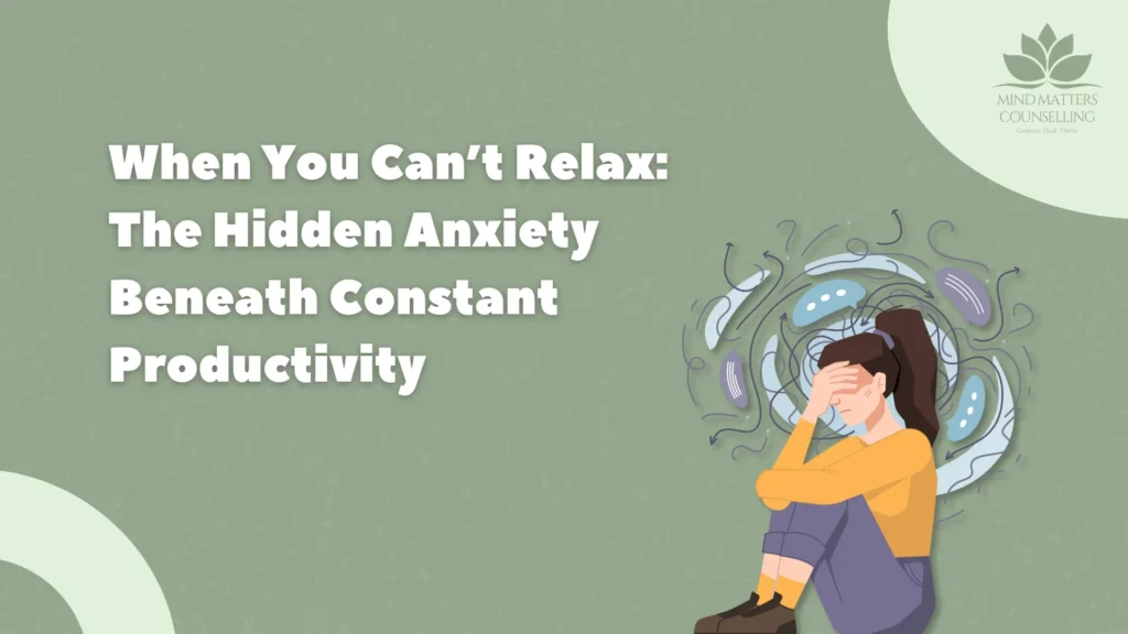 At Mind Matters Counselling, we offer therapist services tailored to help you break free from these patterns and build healthier boundaries. Our expert guidance, combined with practical mental health tips, empowers you to navigate stress, self-doubt, and interpersonal challenges. Whether you’re seeking support for personal growth or relationship counseling online, we’re here to help you cultivate confidence and emotional well-being.